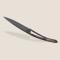 Obtenu par la fixation de titane noir sur une base d’acier inoxydable, cette finition présente un double avantage. Tout d’abord, elle renforce la résistance de surface aux chocs et rayures, puis, elle vient sublimer les lignes élégantes de votre couteau en y apportant de subtils reflets noir mat. Finition discrète par excellence, l’acier se patine légèrement au fil des ans pour magnifier davantage encore cette très belle pièce de coutellerie