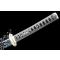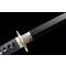 TSUKA: Le noyau Tsuka (poignée) est en bois et il est étroitement enveloppé sur une fausse peau rayée avec de la soie synthétique Ito. Le Fuchi (manche) et le pashira sont en alliage de zinc. Le Tang de l'épée est sécurisé par deux Mekugi (peg). Deux Menuki en cuivre (ornement) se trouvent de chaque côté du Tsuka.