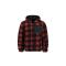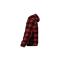 Un côté est en sherpa chaud de couleur rouge, tandis que l'autre est en softshell imperméable de couleur noire.