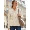 Fidèle aux codes de la saharienne, ce modèle structure la silhouette grâce à ses quatre poches à rabat boutonné (deux sur la poitrine et deux sur les hanches). Sa teinte Sable est un véritable passe-partout : elle illumine une tenue sombre en hiver et s'accorde parfaitement aux tons pastels ou blancs en été. C'est la pièce idéale pour une transition élégante entre la ville et la nature.