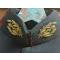 Magnifiques pattes de col de parement en accolade avec logo "laurier" SSA en cannetille dorée - arrière du col velours rouge avec quelques manques - galons capitaine bas des manches