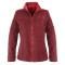 Veste zippée femme bordeaux/rouge en maille contre-collée 400g, col montant, intérieur contrasté, poches zippées et découpes fantaisie. Parfaite pour affronter l'hiver avec style, chaleur et modernité.