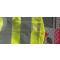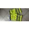 Bermuda jaune avec bandes réfléchissantes, tâche et couleur légèrement passé du au stockage au soleil.