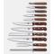 Ce set de 11 couteaux Victorinox Wood 5.1150.11 est en assortiment complet exceptionnel. Les huit couteaux de cuisine sont accompagnés d'une fourchette à viande, d'un éplucheur à pommes de terre et d'un fusil d'affûtage pour tout entretenir. Multifonction, naturel et stylé. Avec ce set de couteaux, vous aurez toujours le bon outil quelle que soit la tâche à effectuer en cuisine.