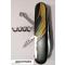 Le manche est noir avec un aspect mat. Le décor "vague" en relief est brillant. La croix, symbole du couteau suisse, est orangée. Le contraste crée un effet unique. La pince à épiler et le cure dents sont noirs pour être assortie au manche.