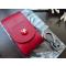 Étui de ceinture en cuir rouge avec fermeture par bouton pression, état comme neuf.