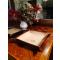 CUIRASSE vous propose cet élégant vide poche en cuir noir pleine fleure, doublé en SUEDINE beige gravé d'une trompe de chasse.