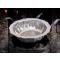 Vide-poche décoratif en acier inoxydable, au rebord ondulé et au métal patiné.