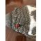 Vintage conque Tibet signes astrologiques métal argenté - pierres turquoises corail - 22cm x 12cm poids 630 grammes