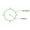 Le réticule est de 2 MOA Dot et 65 MOA vert. Le MRS vous permet de commuter entre le 2 MOA Dot ou 65 MOA et 2 MOA Dot. Vous pouvez régler la luminosité du réticule sur 12 intensités différentes dont 2 en vision nocturne. Le diamètre de l'optique est de 20mm.