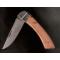 Son manche travaillé en bois français , loupe de GENÉVRIER entièrement faconné main .Arbuste typique du causse Corrézien à la forte odeur épicée.