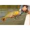 Le fameux dorado surnommé tigre del rio, appartient à la famille des piranhas: tête massive, silhouette courte et robuste, dentition puissante. C?est un chasseur infatigable qui se nourrit de petits poissons. Sa livrée mordorée aux reflets orangés est superbe, tout comme son pédoncule caudal strié de noir.