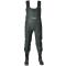 Pantalon néoprène 4 mm souple et confortable, bottes PVC. Renfort aux genoux, poche ventrale à fermeture velcro, bretelle néoprène réglables. Semelles crantées ergonomiques.