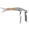 Couteau sommelier inox et bois, 3 pièces (lame coupe-capsule micro-dentée, double levier avec décapsuleur, tire-bouchon).