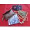 Ensemble compresse Mle C (enveloppe en toile de tulle de lin et coton léger) ruban en coton tissé en V, pochette en toile enduite (pour la préservation de la compresse humide) fermant par 2 boutons pressions, 2 attaches pour être fixée sur la capote. Lunette en toile gris de fer avec liens en cordon de coton , oculaire en cellulose (le gauche est légèrement bombé voir photo dû au temps). C'est une très belle repro. fidèle à l'original.