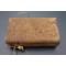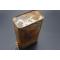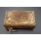 Masque à gaz de tranchée modèle M2B à oculaires bleu horizon dans sa boite en tôle de fer dont subsiste des reste de peinture jaune vert, oxydation de grenier. Masque compressé sans date visible, manque les sangles.