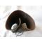 taille moyenne, parties métal oxydées, couture des 2 parties en bas début de décousure mais tiens encore