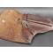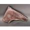 Bel étui de pistolet allemand P35 RADOM seconde guerre, fabrication en cuir brun souple usagé avec un petit trou sur le rabat, écrit sur le rabat intérieur à l'encre noire Pistole 56249 W.A. et deux tampons de fabricant à l'encre peu déchiffrable "44" et (b) à la fin des deux tampon