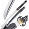 Magnifique Wakizashi forge a la main de la marque Fusdoshin. Lame Maru en acier a base de carbone Hamon realise traditionnellement (ligne de coupe) Nuance: acier 1045 carbone forge (acier dur, 0.45% de carbone) Longueur totale : 78cm Longueur de la lame : 51cm Poids sans fourreau : 930grs Poids avec fourreau : 1070grs Livre avec : -Housse de protection -Support en bois