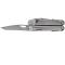 La lame droppoint est faite d'acier résistant à la corrosion 420HC. Ce type d'acier inoxydable contient plus de carbone que l'acier 420 normal. Cet ajout permet une meilleure conservation du tranchant. La forme de la lame convient à presque tous les travaux de coupe. On l'ouvre facilement à une main grâce au trou pour le pouce et ce sans avoir à ouvrir la pince. La lame utile est de 7 cm de long avec un tranchant à 15 degrés. Comme la lame ne mesure que 2,5 mm d'épaisseur, elle coupe très bien.