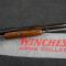 Fabriquée en 1906, soit lors de la toute première année de production, cette carabine Winchester modèle 1906 historique se distingue par son exceptionnel état de conservation. Les parties métalliques sont en excellent état, ne présentant que de très légères traces de manipulation témoignant d’un usage minimal. Les marquages sont profondément gravés et parfaitement lisibles, qu’il s’agisse de l’adresse Winchester, du modèle ou du calibre .22 Short. Le numéro de série précoce 65XX indique une fabrication des toutes premières années de production, ce qui confère à cette carabine une réelle valeur de collection. Ce numéro est bien présent sur les deux parties de l’arme, confirmant son intégrité d’origine dans cette configuration démontable. Les bois sont également en excellent état, d’une belle couleur avec vernis d’origine bien conservé. La pompe est du modèle précoce lisse, caractéristique des premières fabrications. Le talon de crosse précoce en version métallique est parfaitement ajusté, sans jeu.