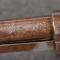 Les parties métalliques ont pris avec le temps une belle teinte tabac foncé homogène, sans oxydation ni corrosion. Les marquages — adresse Winchester, modèle et indications de calibre (.22 Long Rifle, Long et Short) — sont profondément gravés et parfaitement lisibles. Le numéro de série précoce 466XXX, correspondant à une fabrication de 1915, est présent sur les deux éléments principaux de l’arme, confirmant l’intégrité de cette version démontable (takedown). Les bois sont en bon état général, présentant des marques d’usage cohérentes avec l’âge de l’arme, sans défauts majeurs. Le talon de crosse en gutta-percha, orné du logo Winchester, est d’origine, en très bon état et parfaitement ajusté.