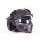 Casque avec masque intégré par Wo Sport. Le masque peut être démonté et changé par un autre compatible. Des scratch sont fixés sur le dessus du casque pour la mise en place d'un couvre casque. La taille est réglable via un système de sangle, et des mousse sont fournie pour être fixée à l'intérieur pour un meilleur confort. Poids du casque : 955g.