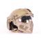 Casque avec masque intégré par Wo Sport. Le masque peut être démonté et changé par un autre compatible. Des scratch sont fixés sur le dessus du casque pour la mise en place d'un couvre casque. La taille est réglable via un système de sangle, et des mousse sont fournie pour être fixée à l'intérieur pour un meilleur confort. Poids du casque : 955g.