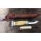 Le couteau Wood Jewel Carving est livré avec un percuteur monté dans un manche en bois qui s'insère dans une poche séparée de la gaine. La lame du couteau a une encoche à l'arrière pour fournir une surface tranchante contre laquelle frapper des étincelles sans endommager le bord du couteau. Tous les couteaux Wood Jewel sont fabriqués en Laponie.