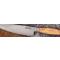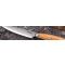 Le manche vous confère pour sa part une excellente préhension du couteau. Présentant une forme incurvée ergonomique d'une, il est conçu avec un superbe bois d'olivier. Le bois est un matériau vivant qui génère des veines et des teintes différentes sur chaque couteau. Votre exemplaire est donc unique ! En parallèle, vous profitez d'une belle mosaïque centrale faisant aussi office de solide rivet, de deux liserés rouges offrant un beau contraste avec le bois et d'une mitre en inox opérant la liaison avec la lame. Le culot est quant à lui gravé du kanji japonais "Tigre"