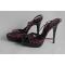 Sandales Yves Saint Laurent, Spartiates Tribute en cuir vernis noir violet taille : 36 hauteur du talon : 12 cm hauteur plateau : 3,5 cm bon état, voir photos