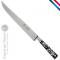 La collection "Pépite" affirme sa "French touch". Cette gamme propose une qualité d'acier supérieur ainsi que des manches transparents qui laissent apparaitre des incrustations de feuilles d'argent. Le label "esprit de Thiers" reconnaît leur qualité. Utilisé avec une fourchette chef ou courbe, le Yatagan permet de découper finement de la viande ou de la volaille. Caractéristiques techniques » Taille : 20 cm » Poids : 120 gr » Série forgée inox » Manche conique avec incrustation d'argent » 3 rivets Inox » Garantie Lave-vaisselle»