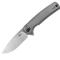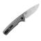 Le 0044 utilise un mécanisme de verrouillage à bouton lisse et solide en activant le flipper pour fixer la lame en place. Appuyez sur le bouton en acier pour libérer la lame pour une fermeture en douceur sur des roulements à billes en céramique KVT. La lame stonewashed de forme Drop Point utilise de l'acier S45VN (HRC: 59-61) pour une rétention de bord et une résistance à la corrosion exceptionnelles.