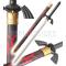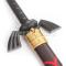 Superbe réplique en acier stainless 440, de l'épée de Link, héros du jeu vidéo Zelda. Gravure a la base de la lame. Ornement doré en ABS a chaque extremité. Livrée avec un magnifique fourreau en bois laqué noir peint a la main.