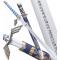 Superbe reproduction de l'epee de Link, protagonite du jeu video Zelda. Replique de la Master Sword en Edition Blue. Lame en bois peint avec inscription sur tout le long. Symbole de la triforce a la base de la lame. Ornement en ABS a chaque extremite du fourreau. Livree avec un magnifique fourreau en ABS recouvert de symbole sur tout le long. Longueur totale epee dans fourreau : 124cm Longueur totale epee sans fourreau : 107cm Longueur de la lame : 77cm Poids epee et fourreau : 810grs Poids epee : 360grs Ideal pour les cosplays ou pour la collection.