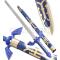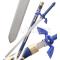 Superbe réplique en acier stainless 440, de l'épée de Link, héros du jeu vidéo Zelda. Lame en acier inoxydable. Gravure a la base de la lame. Ornement doré en ABS a chaque extremité. Livrée avec un magnifique fourreau en bois laqué avec décoration sur tout le long.