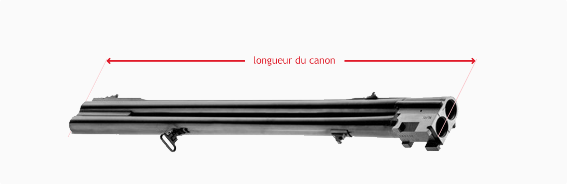 La mesure de la longueur d’un canon, pour un fusil de chasse superposé ou juxtaposé, se prend de la bouche du canon jusqu’à la tranche arrière de la ou des chambres du canon.