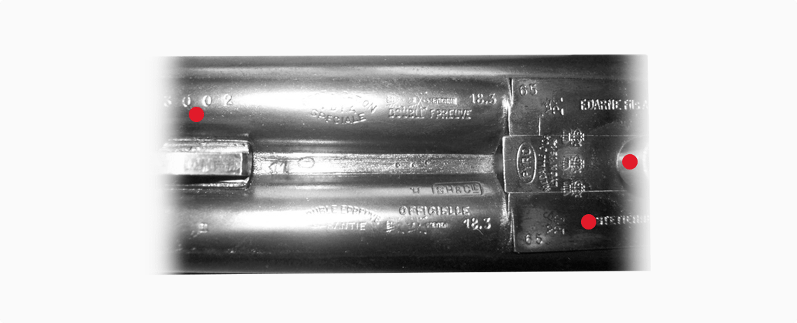 Les poinçons peuvent se retrouver sur toutes les pièces principales d’une arme (canon(s), boite de culasse, culasse etc…).