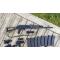 Sont garde main d'origine avec un supplémentaire avec picatinny avec un faux an/peq qui ne fait que laser sans piles,un ressort supplémentaire m90,un moteur ultra torque long de chez Point,et pour terminer avec un upper avec picatinny (une patte est cassé mais une fois monté ça ne gêne absolument pas )