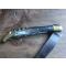 ancien laguiole pliant systhème 3 pieces "" calmlls hcrs concours "" plaquettes mitres corne lame acier carbonne L 10,5 cm total ouvert 21,8 cm guillochage du ressort aucun jeu belle état détail photos