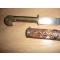 ancien poignard ethnique fourreau metal bois ouvragés garde poignet laiton animalier lame acier motif decors gravé sans jeu dim longeur tatal 41,5 CM lame seule 28 cm