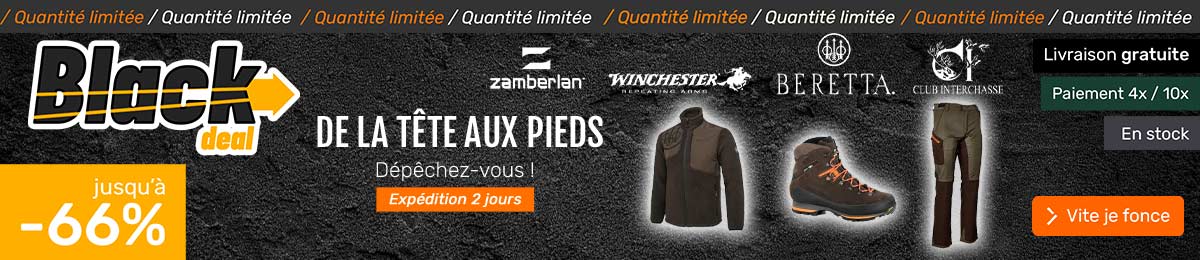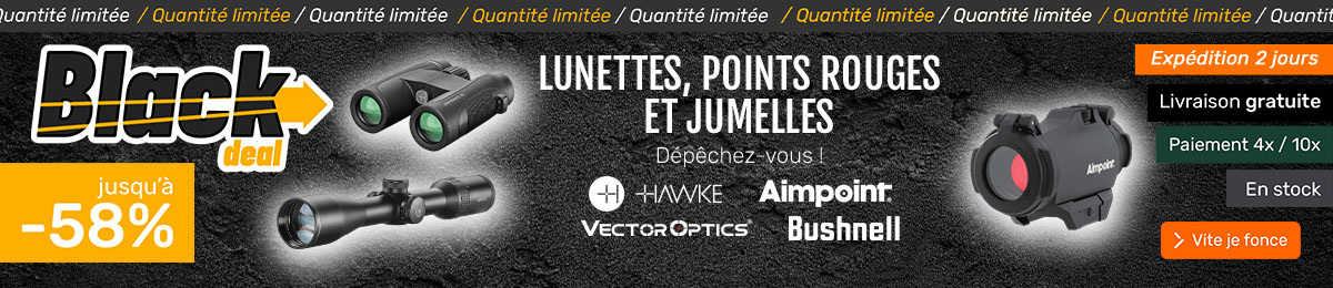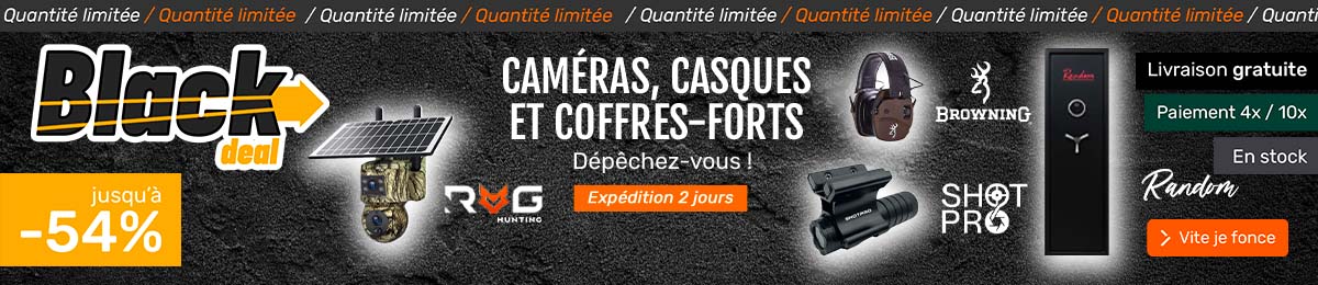 Retrouvez sur l’univers chasse de NaturaBuy tout le matériel neuf et d’occasion nécessaire à la pratique de votre passion. Les bonnes affaires et les promotions sont permanentes et des milliers de nouveaux articles sont proposés à la vente chaque jour. Retrouvez notamment, un large choix de fusils ou de carabines de chasse, des lunettes de tir, des dagues de chasse, des arcs de chasse, des filets de camouflage… mais aussi du matériel pour chiens de chasse. Quelle que soit votre pratique de prédilection, chasse au grand gibier ou chasse au petit gibier, vous trouverez ici tout l’équipement nécessaire, neuf ou d’occasion. Voir plus