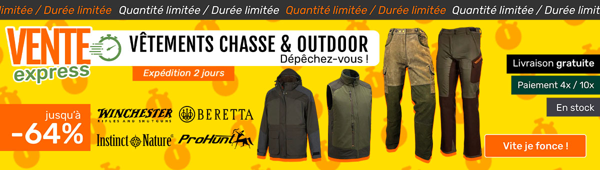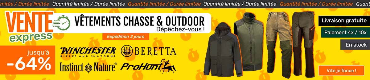 Retrouvez sur l’univers chasse de NaturaBuy tout le matériel neuf et d’occasion nécessaire à la pratique de votre passion. Les bonnes affaires et les promotions sont permanentes et des milliers de nouveaux articles sont proposés à la vente chaque jour. Retrouvez notamment, un large choix de fusils ou de carabines de chasse, des lunettes de tir, des dagues de chasse, des arcs de chasse, des filets de camouflage… mais aussi du matériel pour chiens de chasse. Quelle que soit votre pratique de prédilection, chasse au grand gibier ou chasse au petit gibier, vous trouverez ici tout l’équipement nécessaire, neuf ou d’occasion.