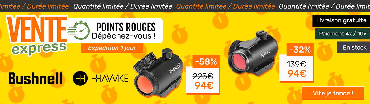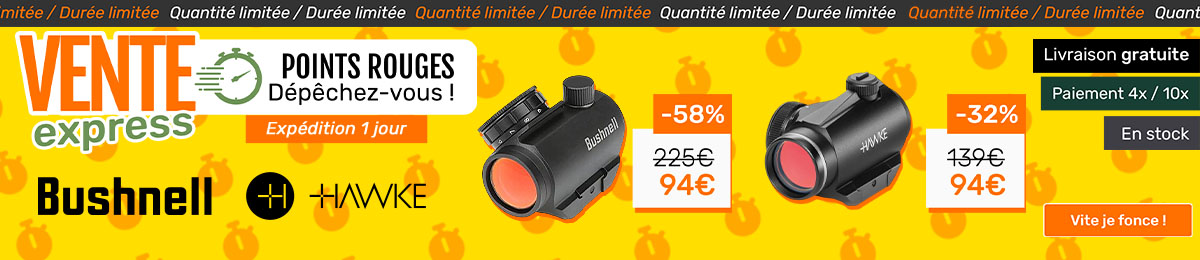 NaturaBuy vous propose le catalogue le plus étoffé du marché, que ce soit pour la chasse en battue, pour la chasse à l’affût, la vénerie, la chasse à l’arc, la chasse au gibier d’eau, aux lapins et lièvres, perdrix, palombes ou encore corvidés sans oublier tout le matériel pour le piégeage. Vous trouverez sur le site toutes les carabines de chasse, fusils de chasse superposés, juxtaposés, semi-automatiques, express, arc de chasse, lunettes de chasse d’affût et lunettes de chasse de battue, montages, cornes et trompes… Nos équipes s’efforcent de trouver pour vous les meilleurs prix auprès de vendeurs professionnels et de vendeurs particuliers sur du matériel neuf comme sur du matériel d’occasion. Partez à la découverte des petites annonces d'actions de chasse, de vente ou location de bois de chasse ou de propriétés. Et pour encore plus d'évasion, les voyages et séjours de chasse en France ou l'étranger vous attendent !