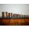 ancienne et magnifique série de  7 mesures indiennes en cuivre rouge cerclé de cuivre jaune