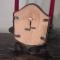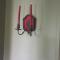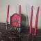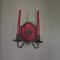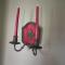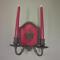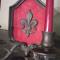 modèle à double bougeoir monté sur un blason fleur de lys sur un fond en feutrine rouge foncé ( bordeaux )