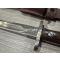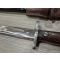 Baïonnette avec gravure "GR 90 KINS?" avec étui repeint avec un trou et porte fourreau. Verrou fonctionne. dimensions : longueur 38,8,5cm lame 26,6cm étui 33cm