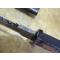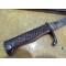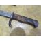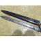 Longueur standard de ce modèle , lame datée 1916 dessus avec poinçons Prusse . Fonctionnement du bouton . Bois d'origine qui est un peu sale, idem des vis oxydées. 2° type sans oreille. Pas de N° sur le fourreau mais un chiffre en opposé du marquage de lame qui parait non reglementaire.