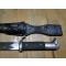 lame polie blanc avec bon marquage du fabricant , monture chromée avec usure par endroit , fourreau au bronzage un peu passé , gousset cuir vernis patiné , piece qui a été porté