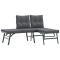 bancs de jardin avec coussins 3 pcs noirCet ensemble de banc de jardin est parfait pour une utilisation à l'extérieur et il est conçu pour être le point central de votre jardin, terrasse ou patio, etc. Cadre robuste et stable : le cadre en acier enduit de poudre est solide, stable, durable et résistant à la corrosion et aux intempéries, ce qui garantit des performances durables.Siège latéral réglable : le petit panneau latéral de chaque canapé peut être relevé, transformant le canapé en une confortable chaise longue pour la relaxation. L'assise réglable peut être réglée sur trois niveaux différents pour répondre à vos besoins de lecture, de bain de soleil ou de sieste.Expérience d'assise confortable : ce mobilier d'extérieur, doté d'un coussin épais rembourré, offre une expérience d'assise confortable.Dessus de table robuste : le dessus du bout de table robuste est parfait pour placer vos boissons, aliments, et autres objets décoratifs.Design moderne : la table basse n'ajoute pas seulement du charme à votre espace de vie, elle s'intègre également sans effort à un large éventail de styles de mobilier. Bon à savoir :Pour que vos meubles d'extérieur restent beaux, nous vous recommandons de les protéger avec une housse imperméable. Maximum 110 kg par siège. Soyez conscient du risque de feu ouvert et d'autres sources de forte chaleur à proximité de l'appareil.